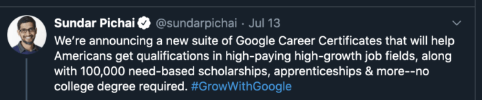 Seolah Google sedang mengatakan, “Selamat tinggal kuliah 4 tahun !”