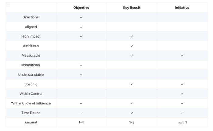 4. Menetapkan 3 – 5 key results untuk setiap objective. Ini sangat penting. Jangan lebih dari 5 dan jangan kurang dari 3 key result per objective.